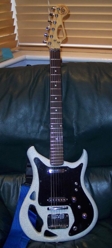 It`s a (couple of slightly iffy pics of a) Burns Double Six, Club Series, (Chinese built, I think), and It didn`t work properly, and It didn`t have a case when it arrived, both trivial problems and all sorted now, and it`s worth every penny, and i`m a happy bunny , or summat like that.